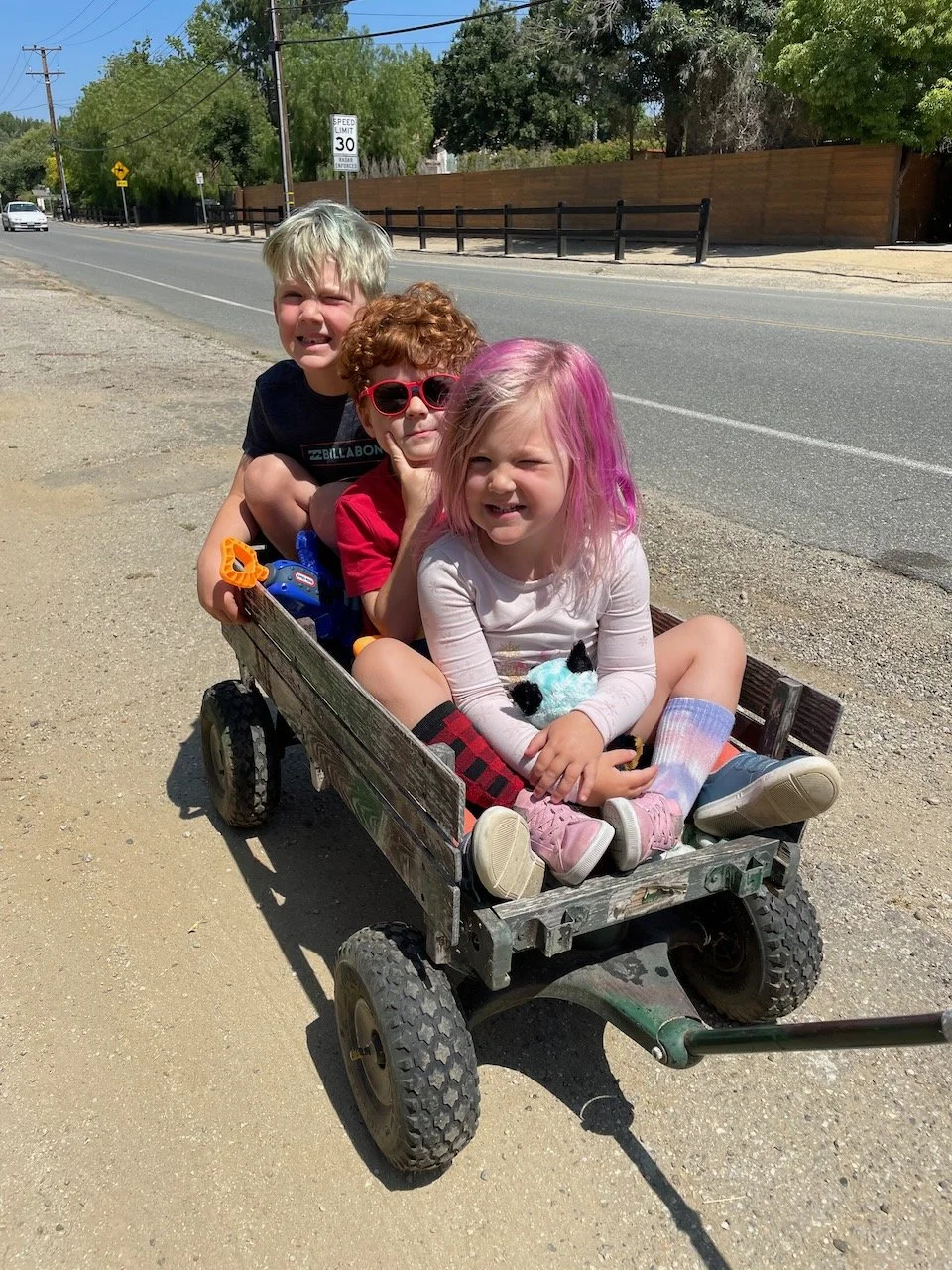 Wagon ride to the park. The youngest rode, while the two older cousins pulled.