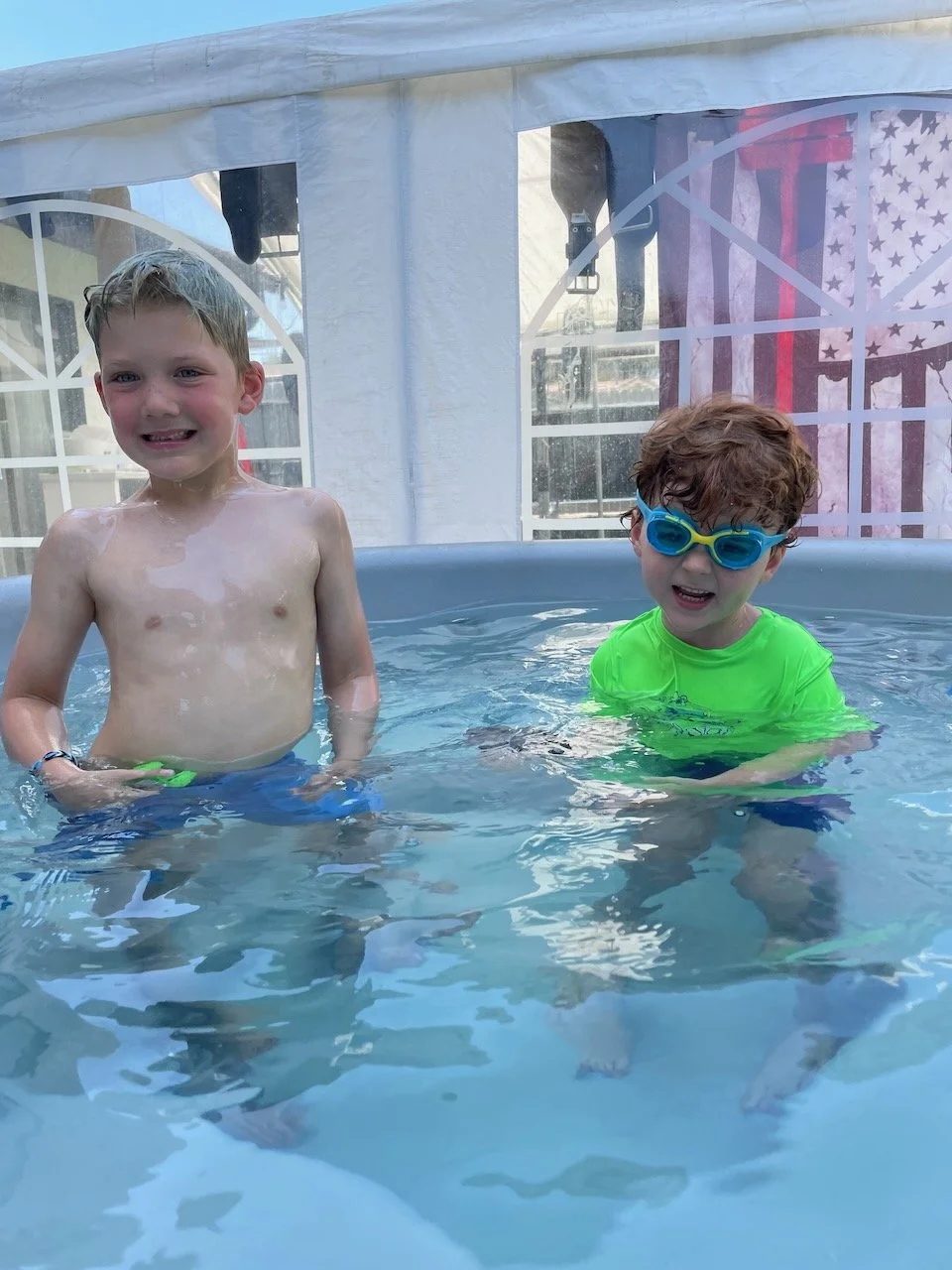 More Jacuzzi hang out. Grandpa Tim is loving life.