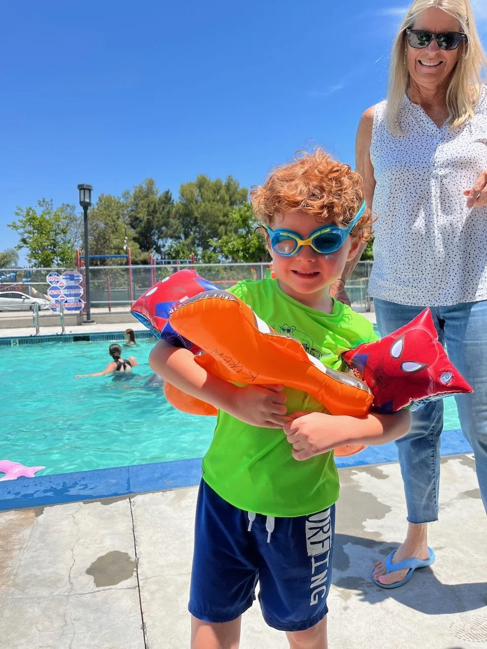 Pool party and baptism after church. Grandma loves her Django.