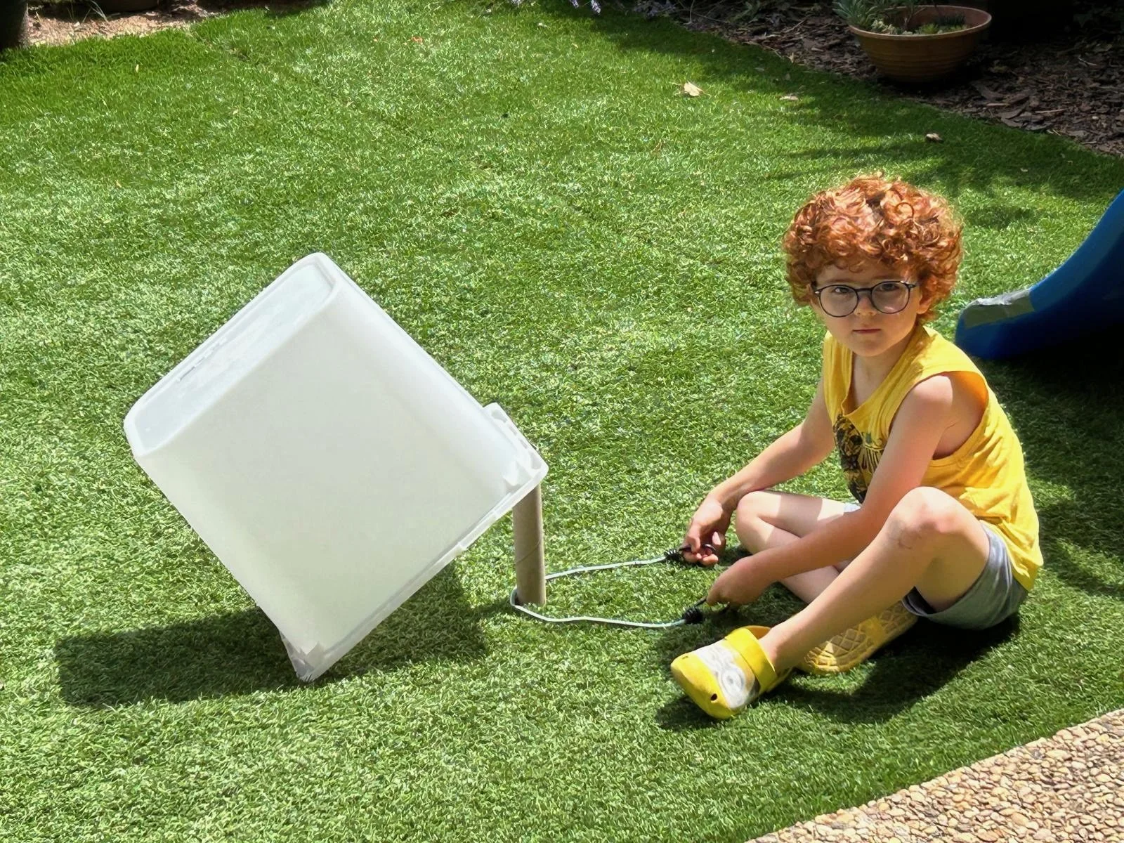 They also played boy scouts in the yard. Not sure what animal they were trying to catch, perhaps lizards.