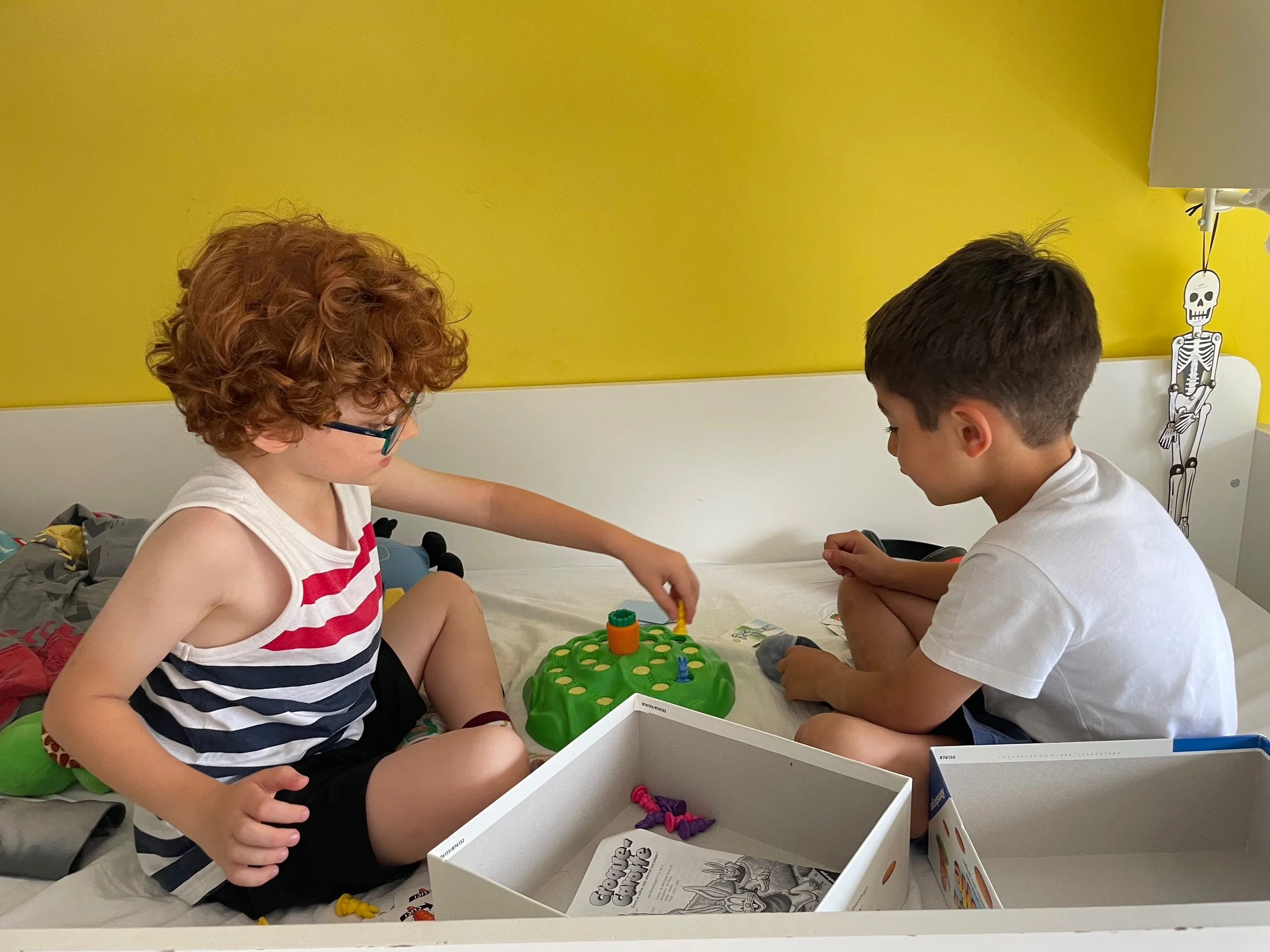 Had some friend over after church. Andreas and Django had fun playing “Croque Carottes” together.