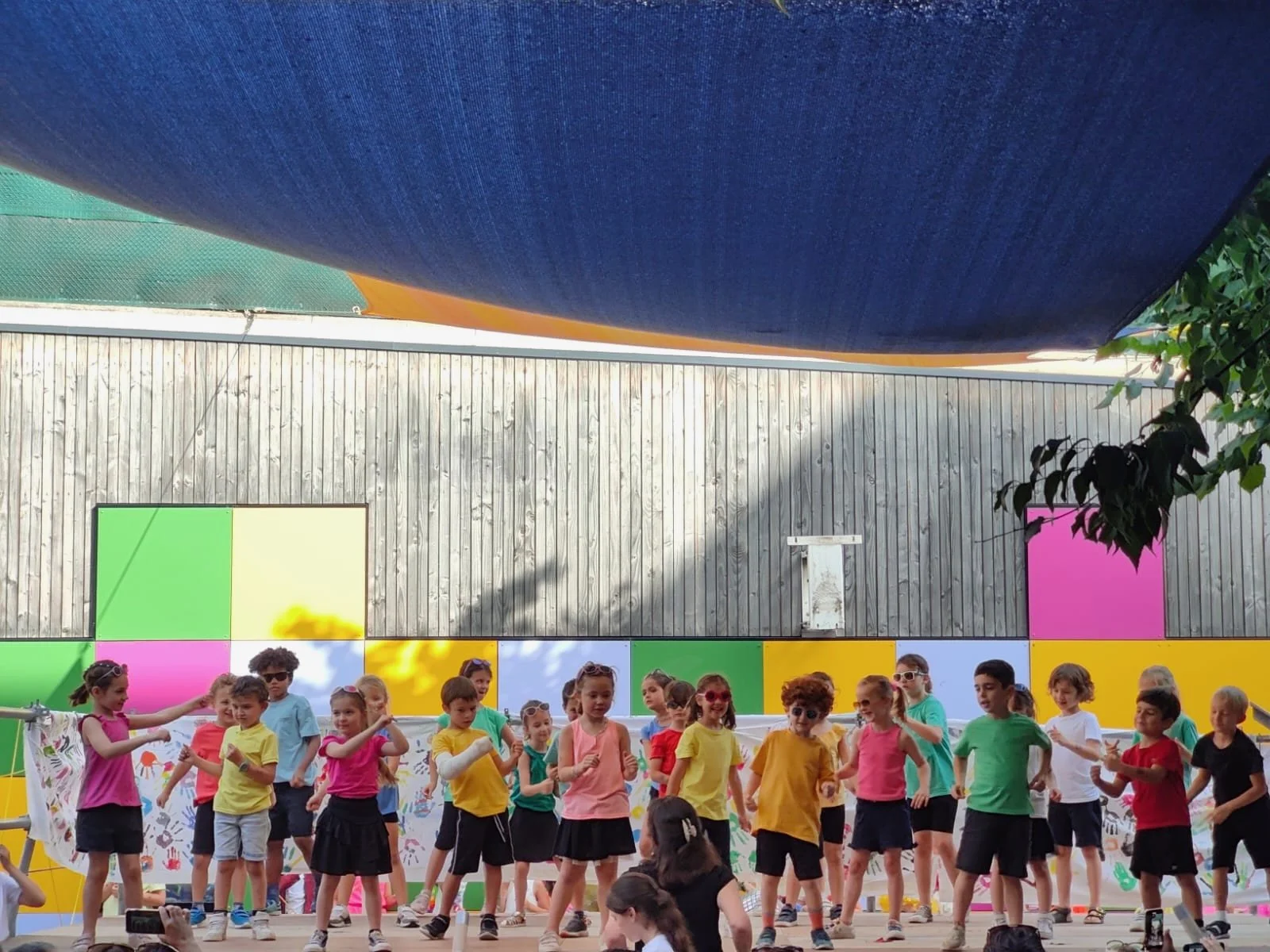 Daphné’s class. She is on the right of the photo in the back of the line. Their class sang and danced to “La Cheucheu Synchro.”