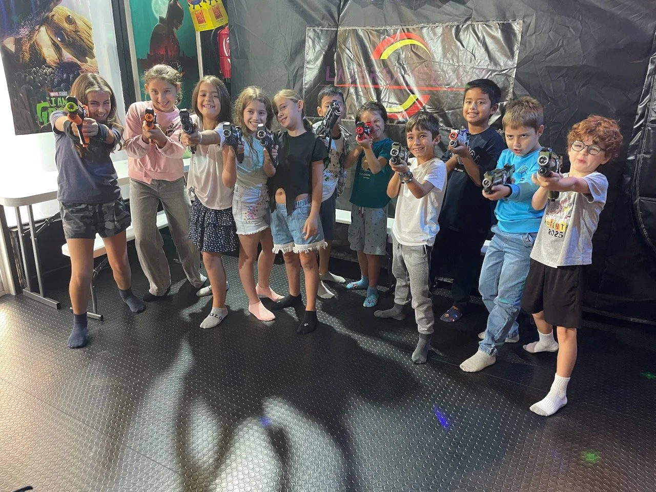 Victor’s birthday party. Daphné and Django were both invited. Laser games.