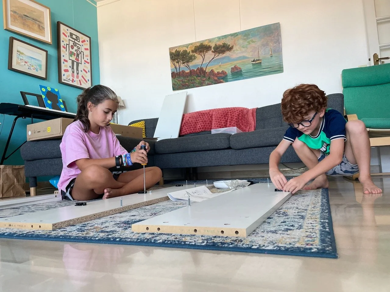 The kids helped me assemble an IKEA shoe organizer for the entry way.