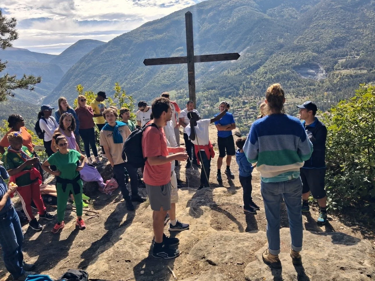 The group by the cross.
