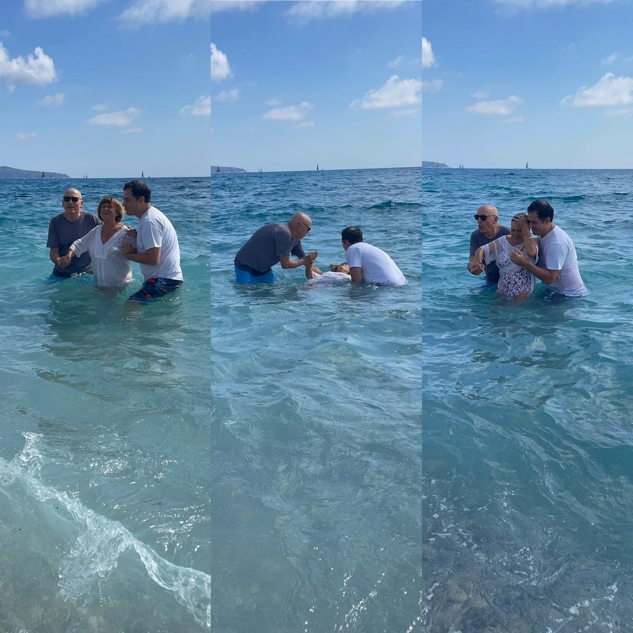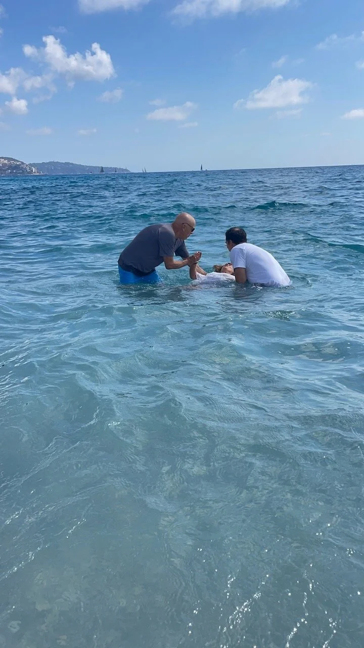 Then, the whole church walked the 7-minute walk to the sea for the main event!