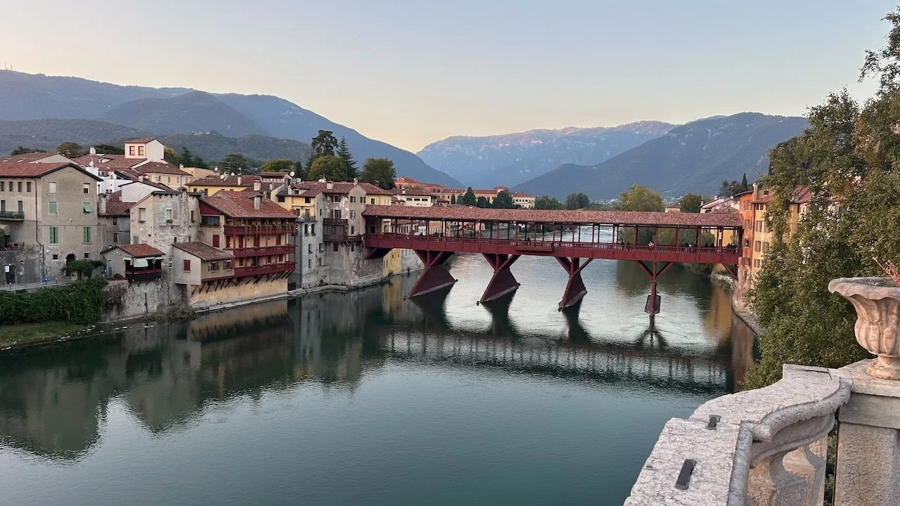 Nathan enjoying the view of the Brenta River and the Ponte degli Alpini (the cool bridge).