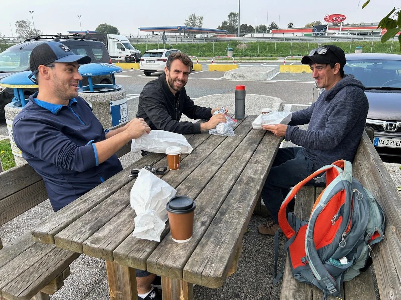 Road trip lunch stop. Tonio, Nathanaël and Ben.