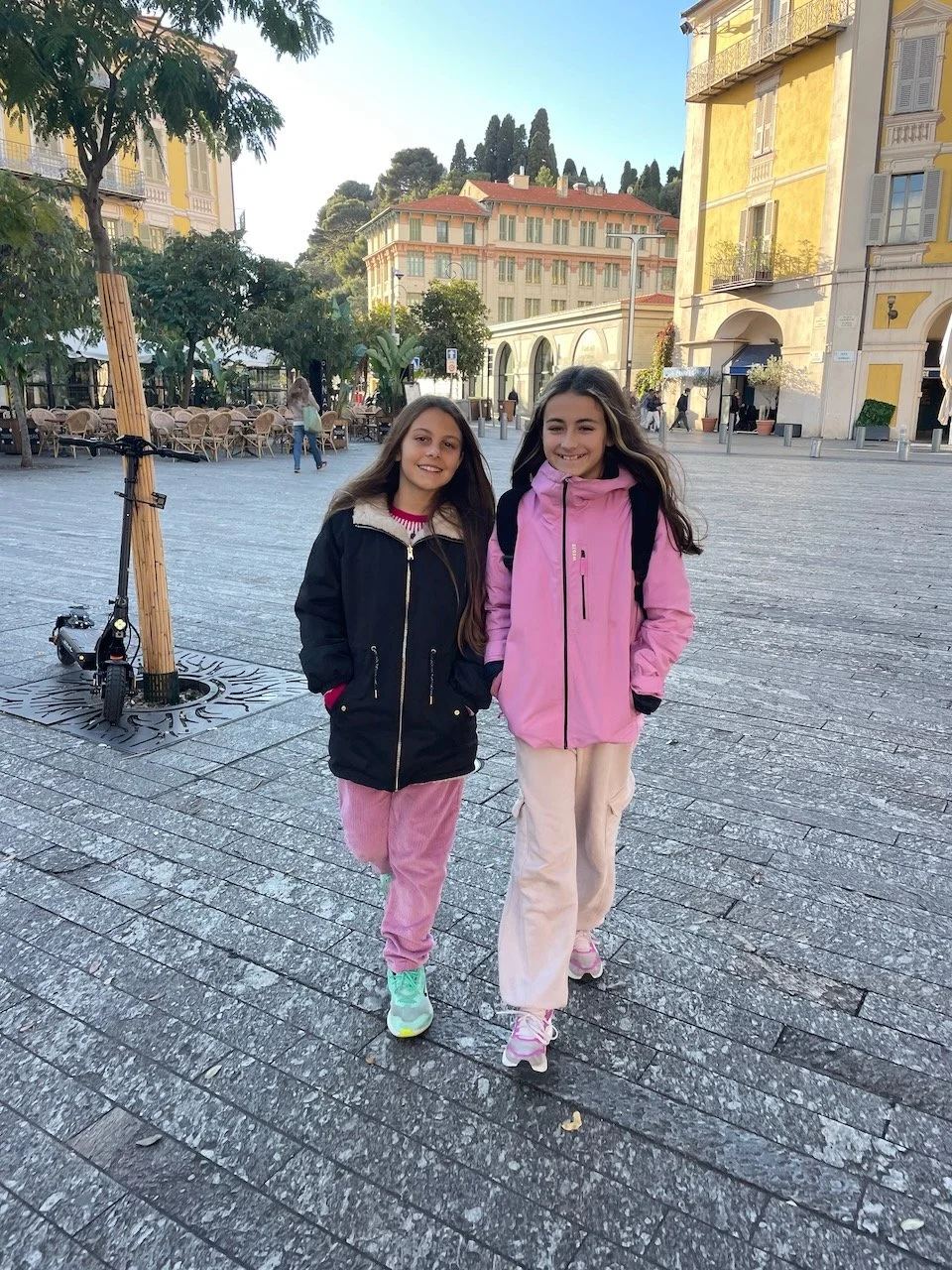 Alice and Daphné didn’t have school one day, so they came with us into town to our church team meeting. Here they are walking through Place Garibaldi.