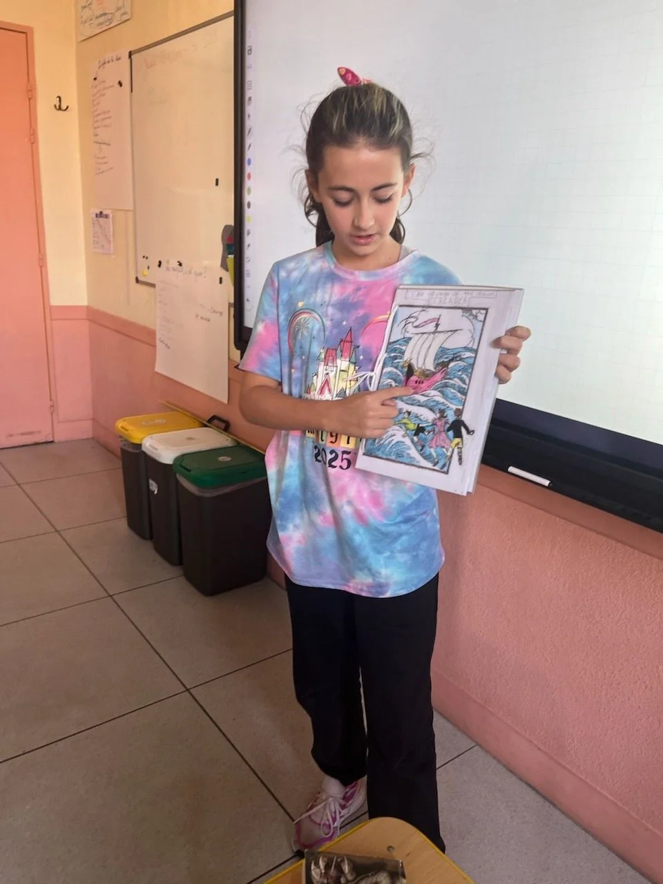 Daphné sharing with her class about the book she read over the October vacation, The Voyage of the Dawn Treader.