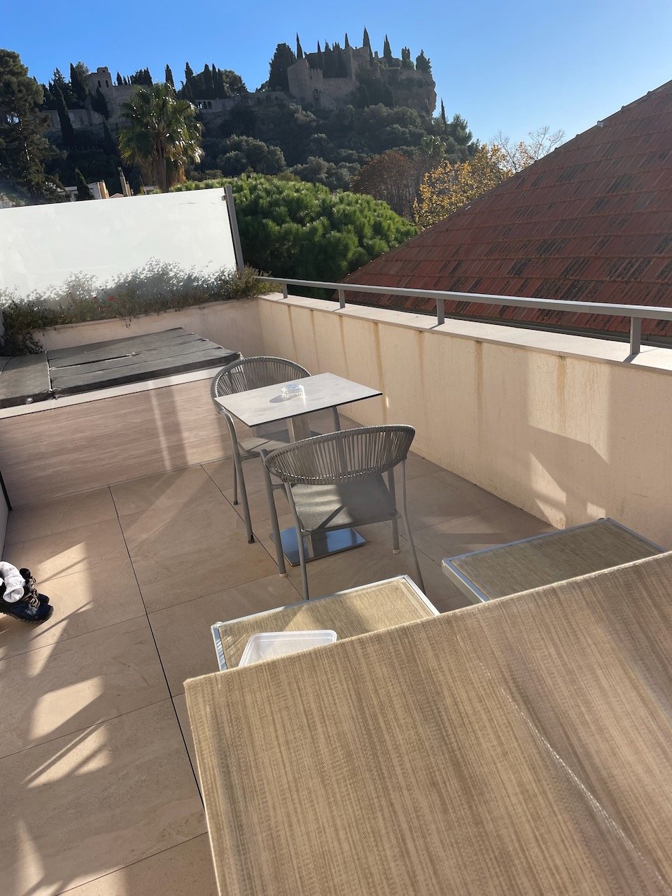 Our balcony with our personal Jacuzzi! It was delightful. And that castle on the hill!!!