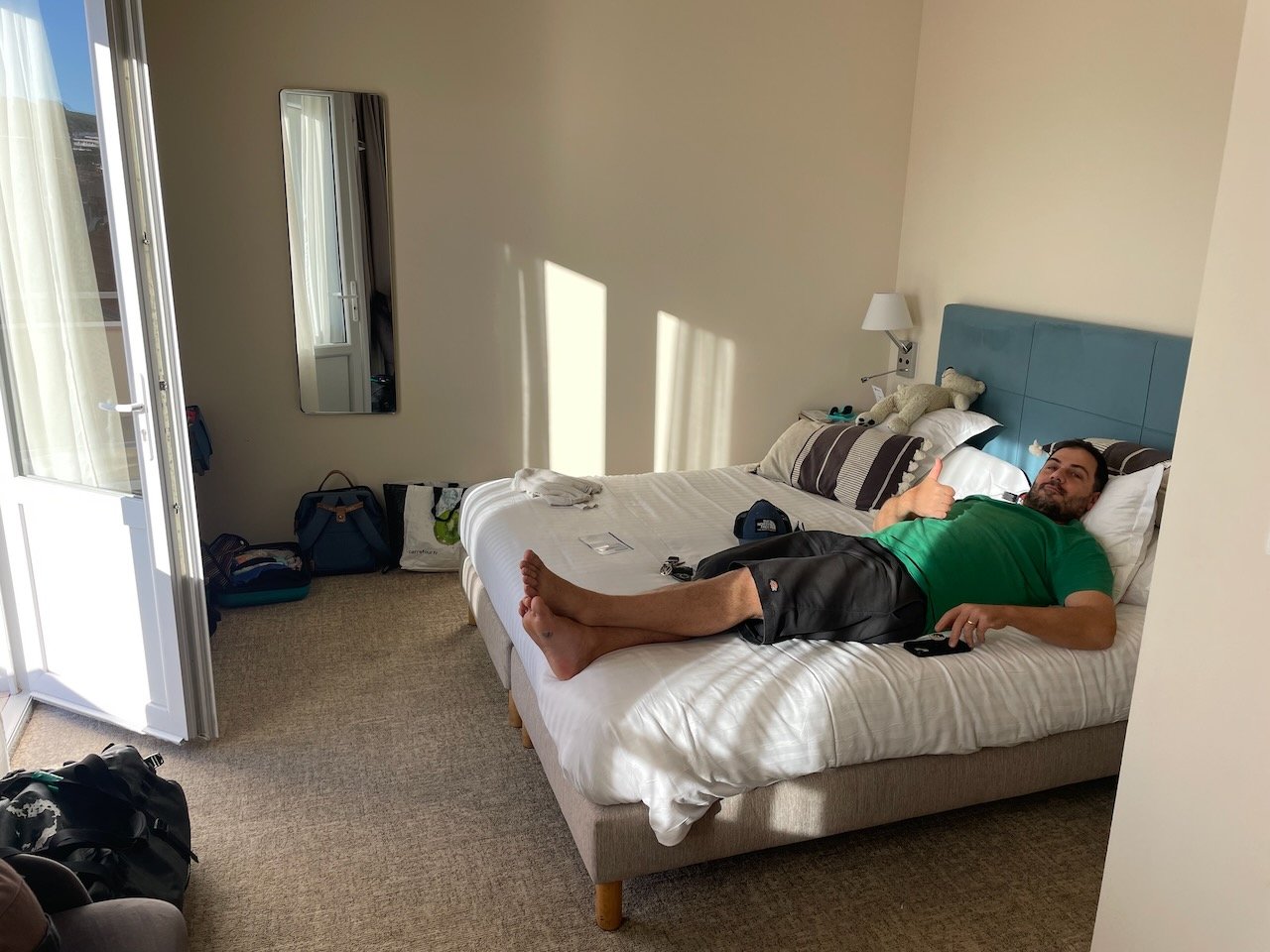 Tonio made reservations at a hotel in Cassis, near Marseille for 3 nights. Usually, we only leave for 2 nights, but this one was special. We are so thankful for Tonio’s parents who help with the kids while we are away. Thankfully, Daphné was away on her classe verte, so Django was an only child with his Mamie and Papi. He was so happy. First selfie above.