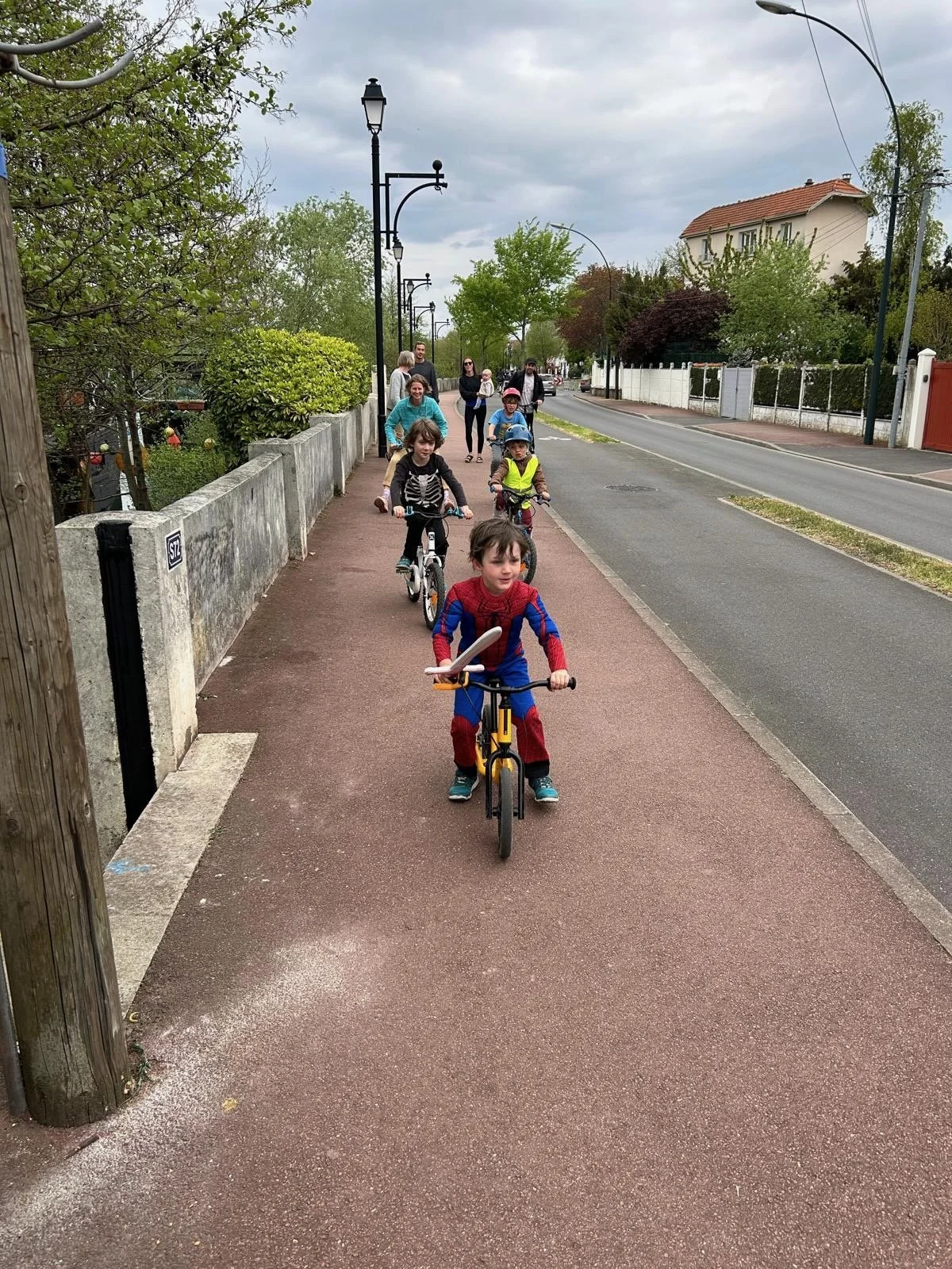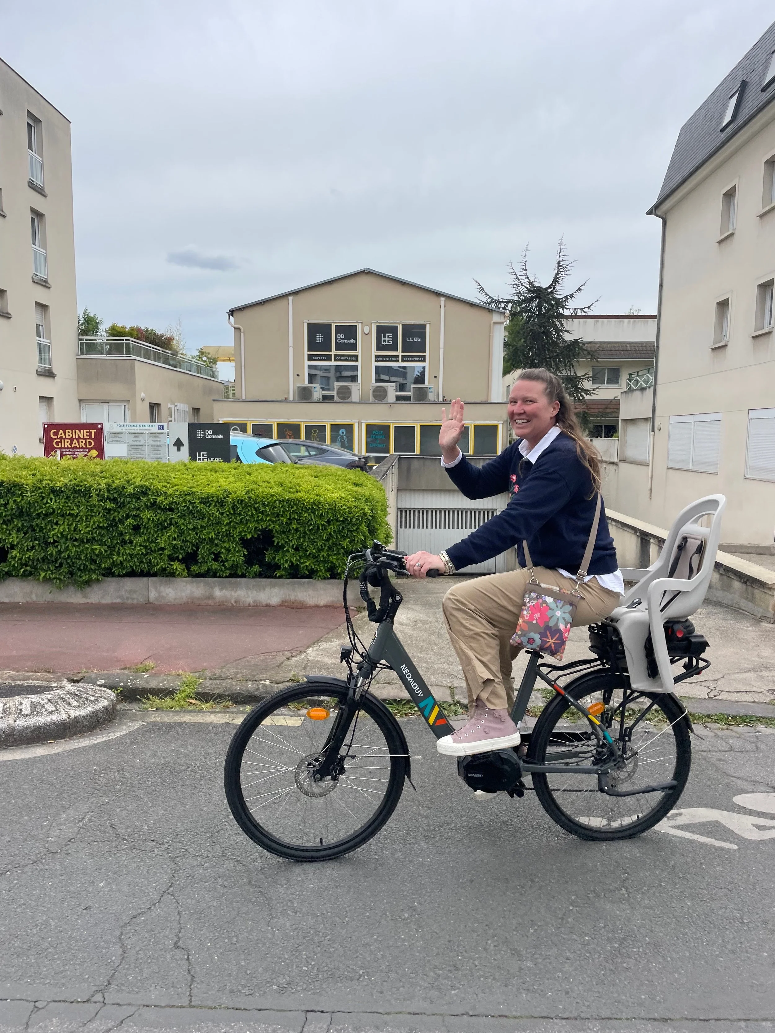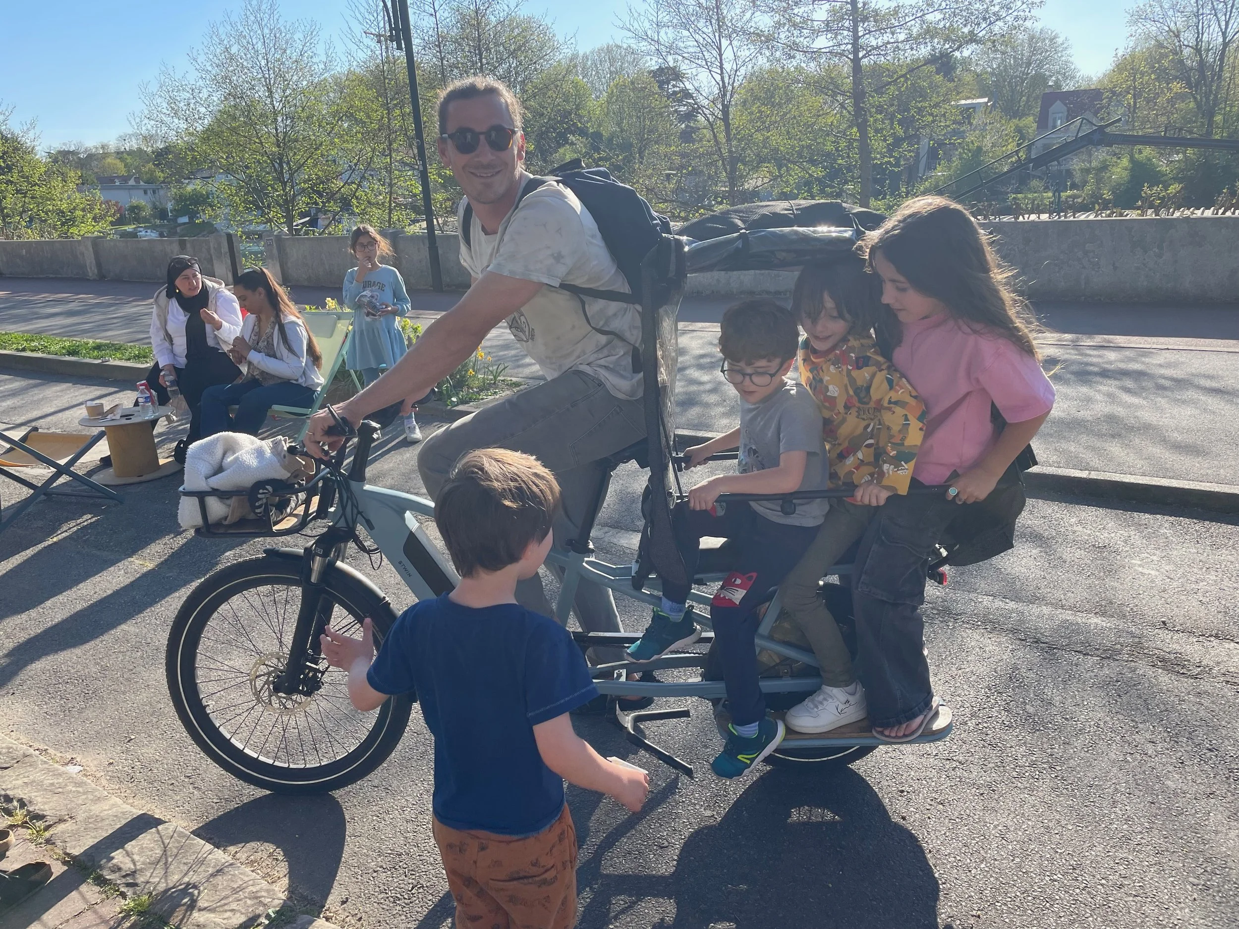 Daph and Django went with Tonton Seb to pick up Noé from school on the electric bike.