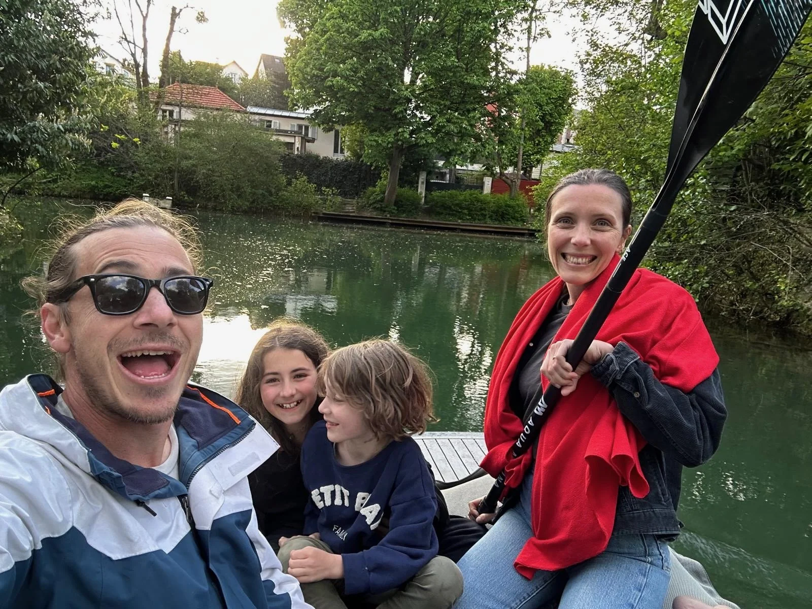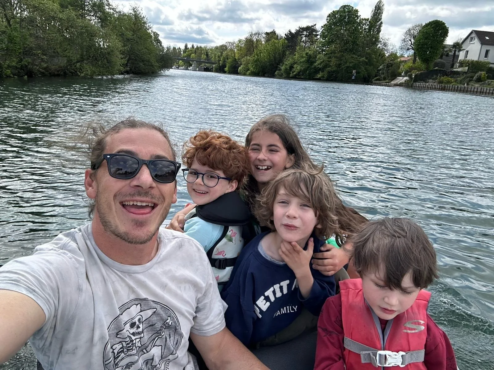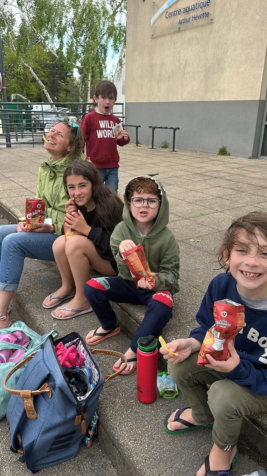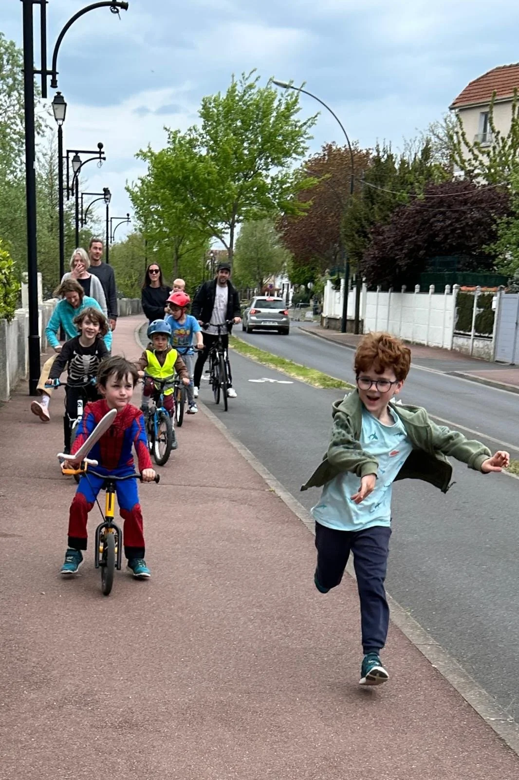 Daph and Django went with Tonton Seb to pick up Noé from school on the electric bike.