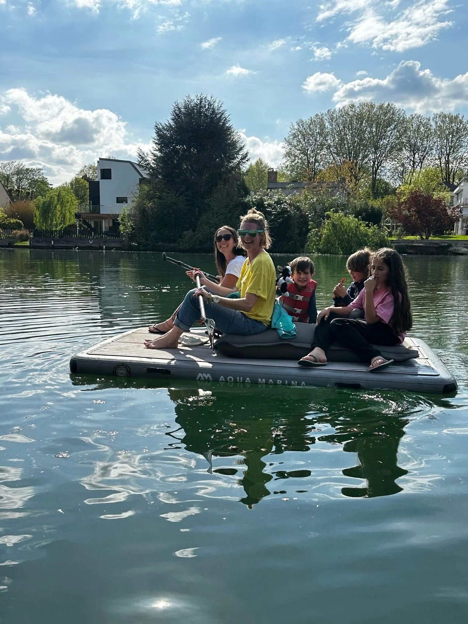 Paddling up river on the platform with no rudder. It was hilarious to keep it going straight.