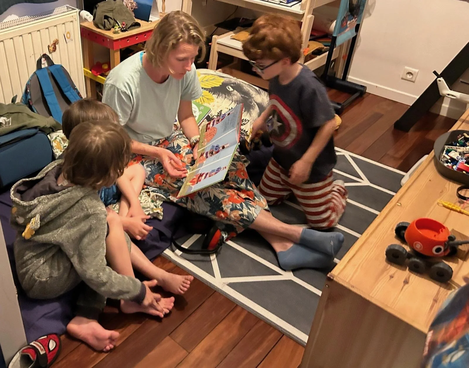 Story time with big cousin Daphné.