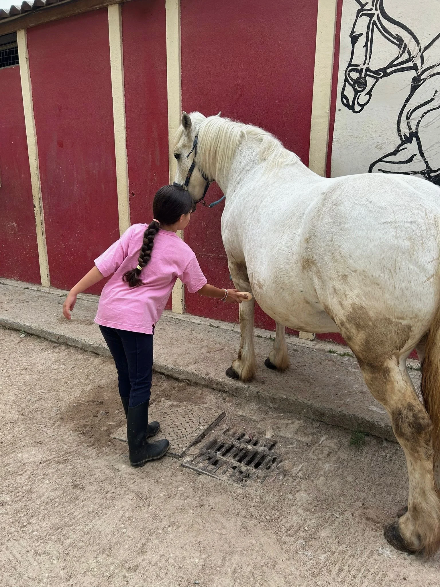 Brushing Atari’s muddy legs.