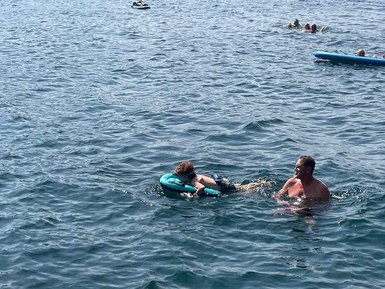 Daphné took this picture of me and Django in the water on our Rad Bugs.