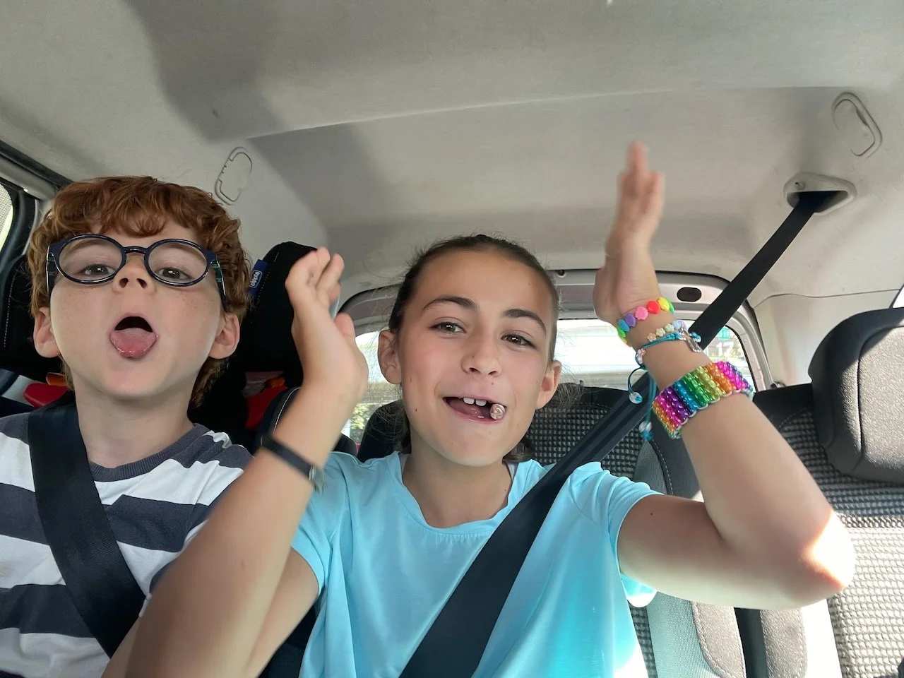 Saying good-bye is always so hard. Daphné sandwiched between Evelyn and Mia. Costa Mesa, California.