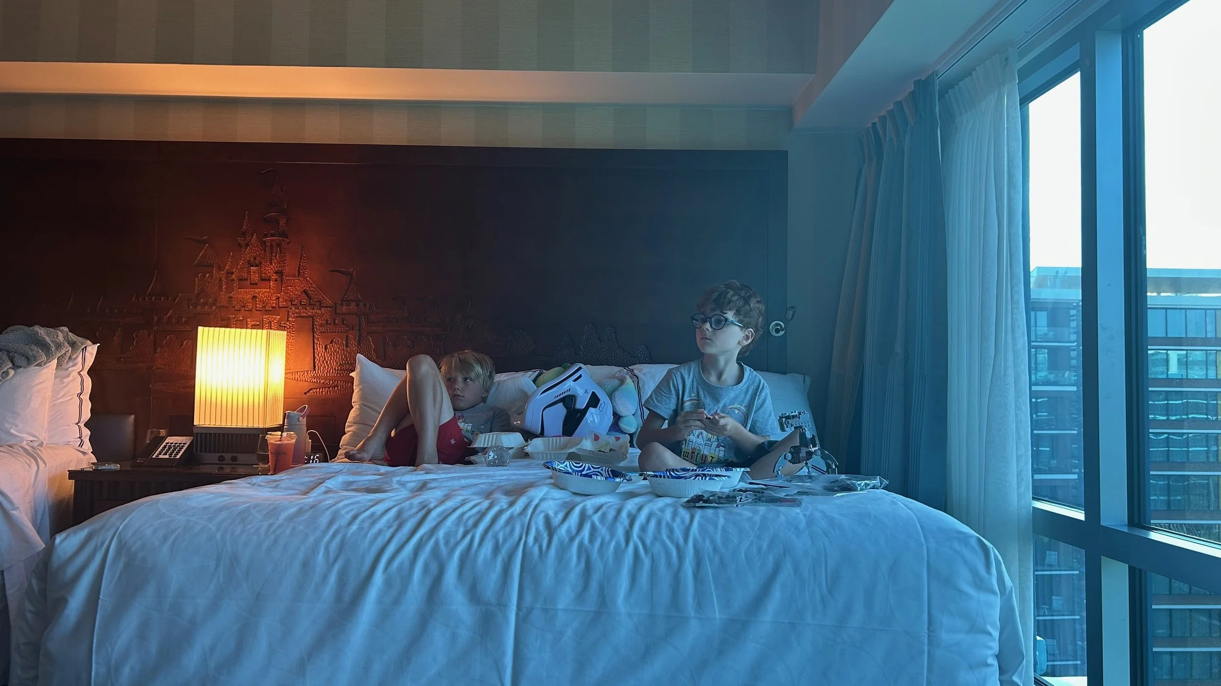 Poor Rowdy had a fever, so Django was happy to join him in the hotel after a LEGO purchase with Papa.