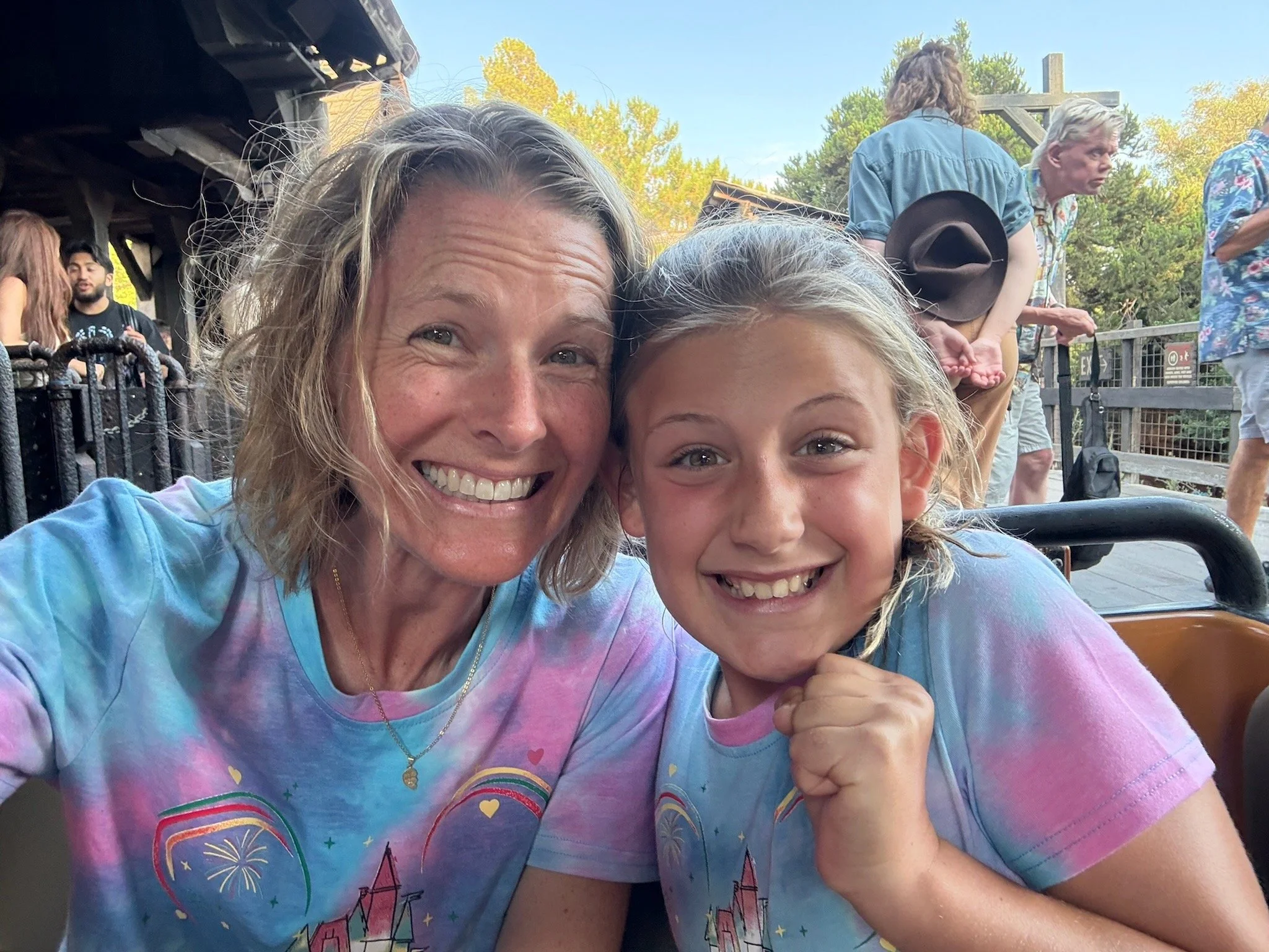 Rowyn and I screaming and having so much fun on Thunder Mountain.