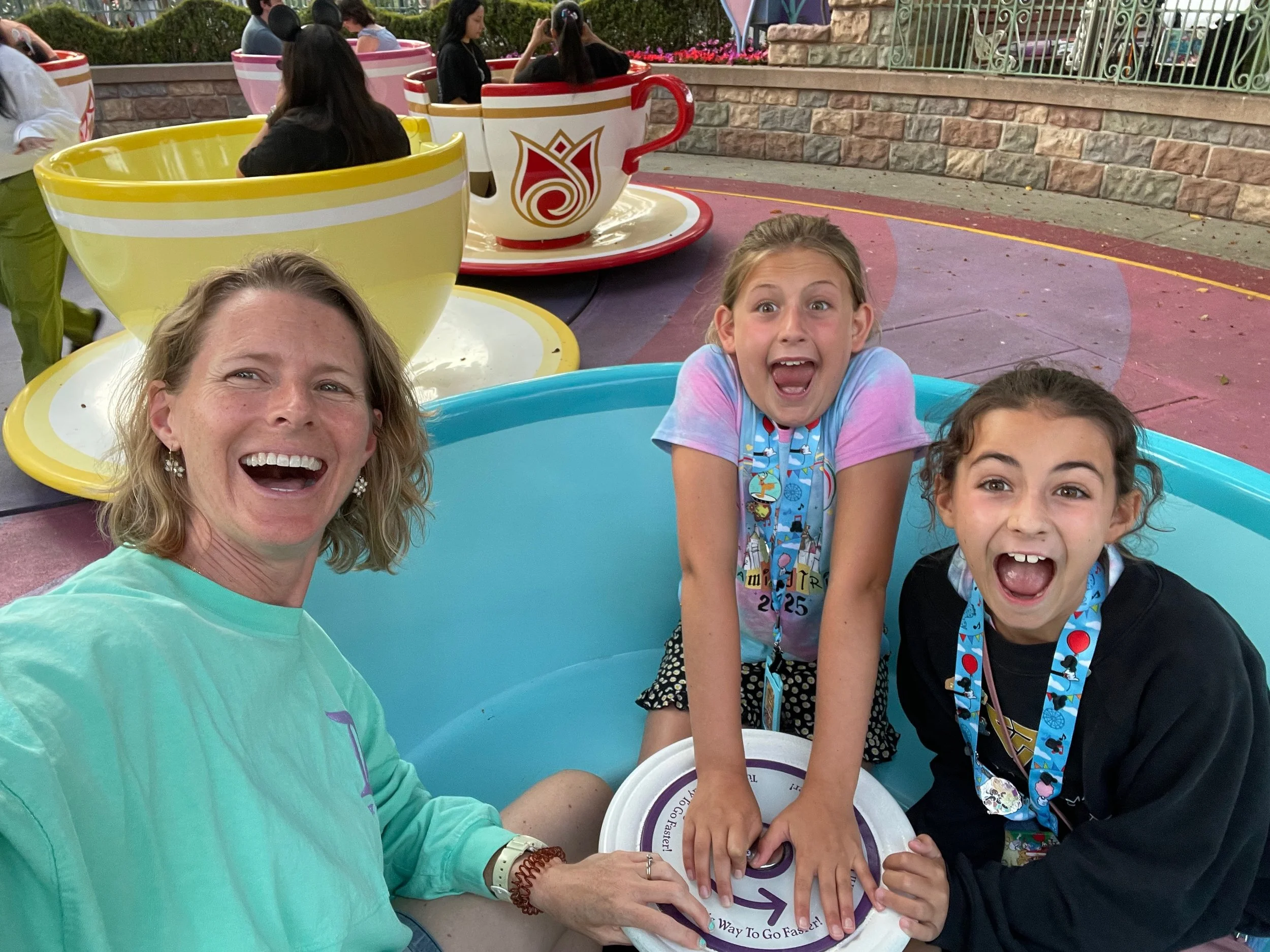 Teacups! Would you believe this picture was taken at 7:30pm? We were trying to squeeze all the fun we could out of the day.