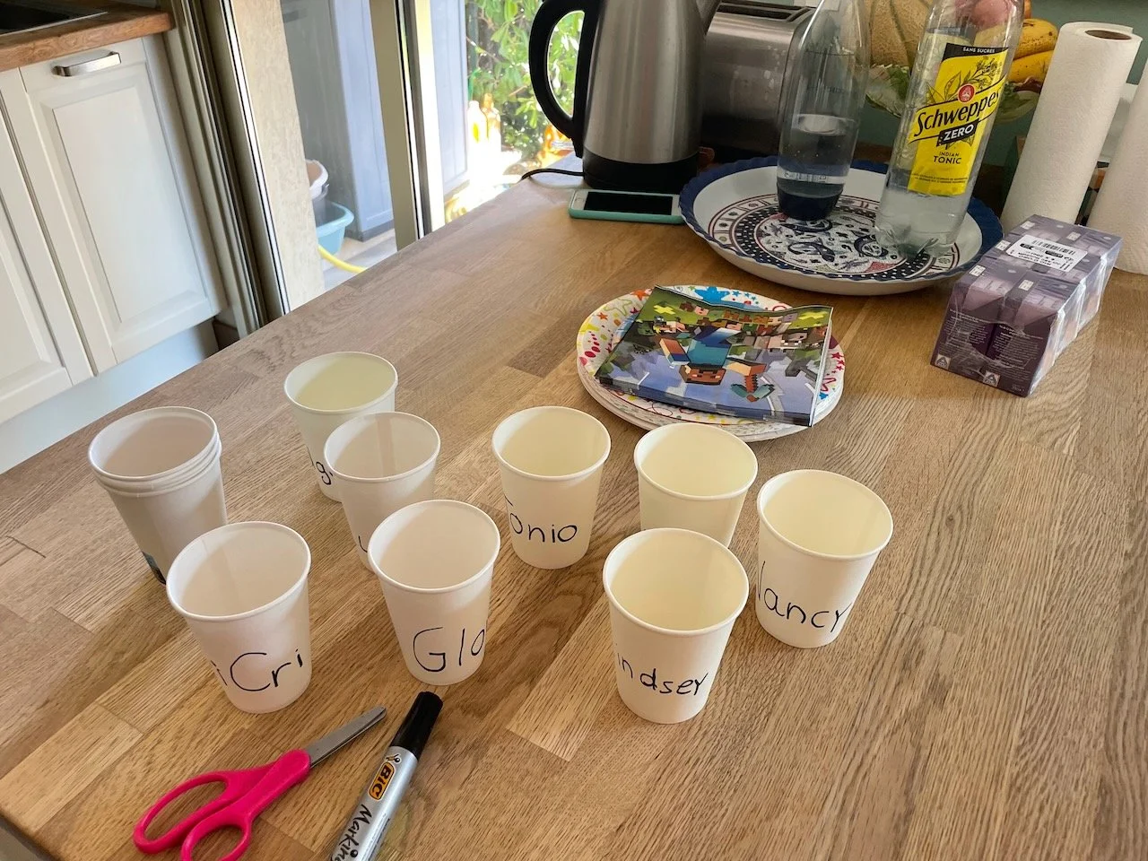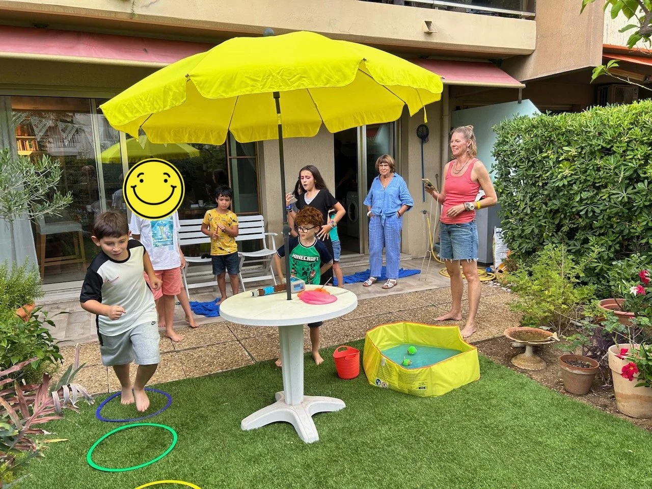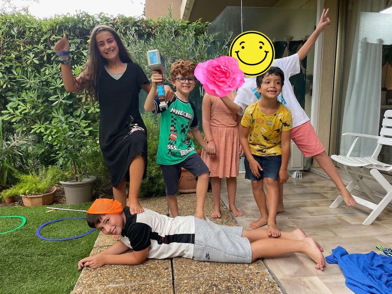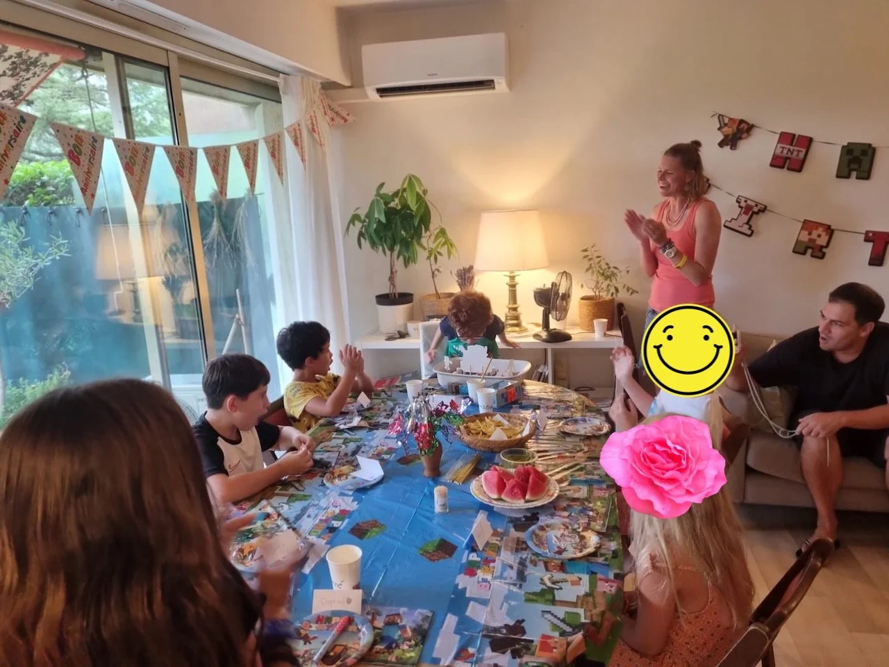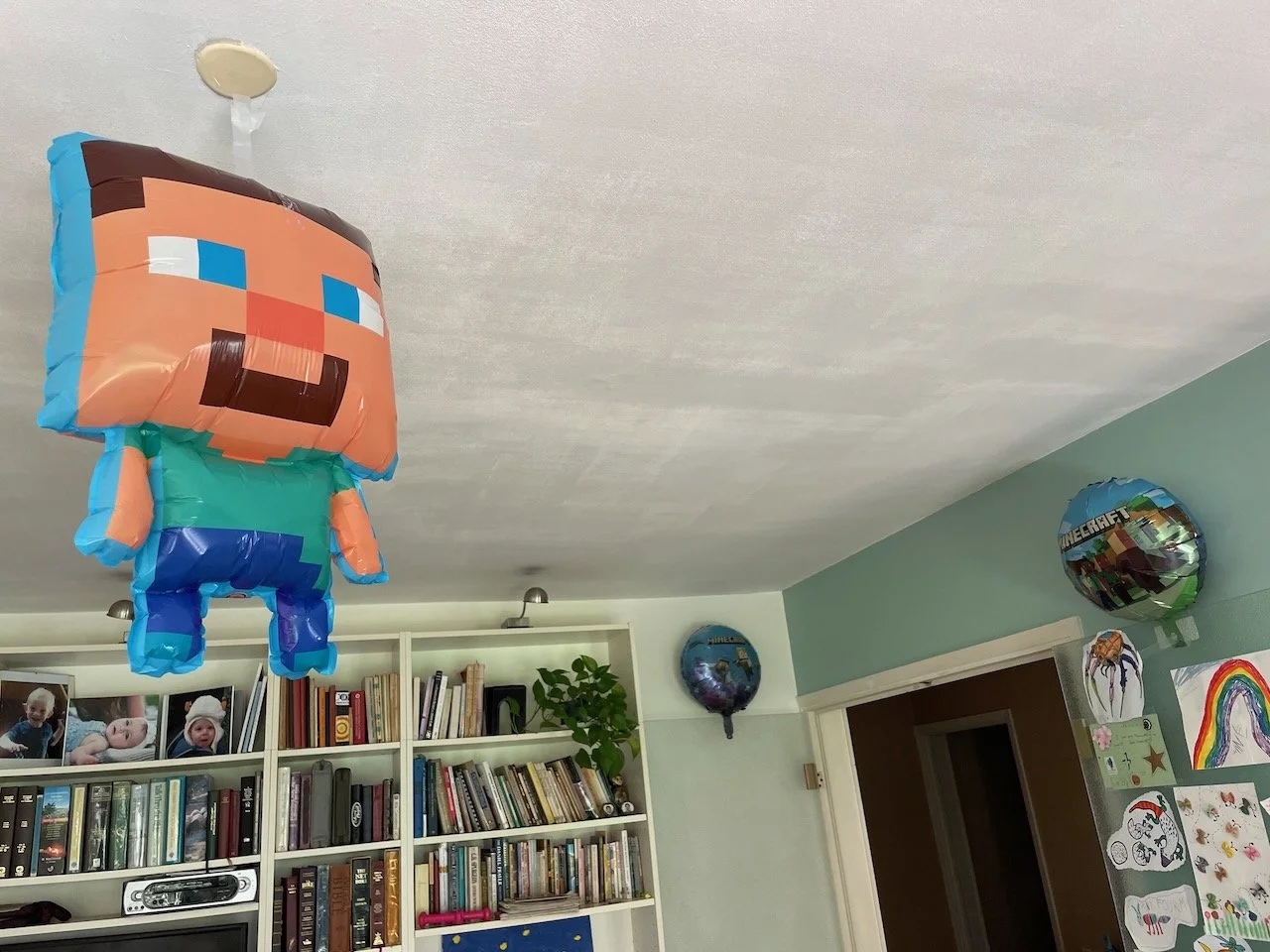 Minecraft theme this year. Thank you Pierre and Nancy for allowing us to have the party at your air-conditioned home with a yard!