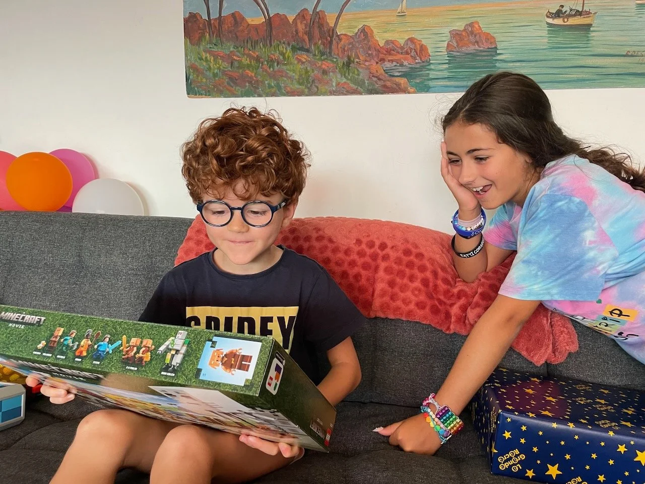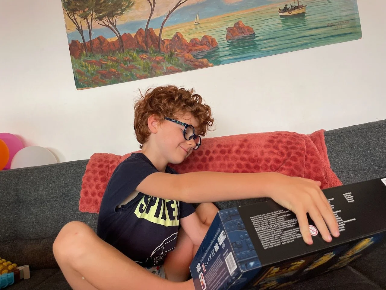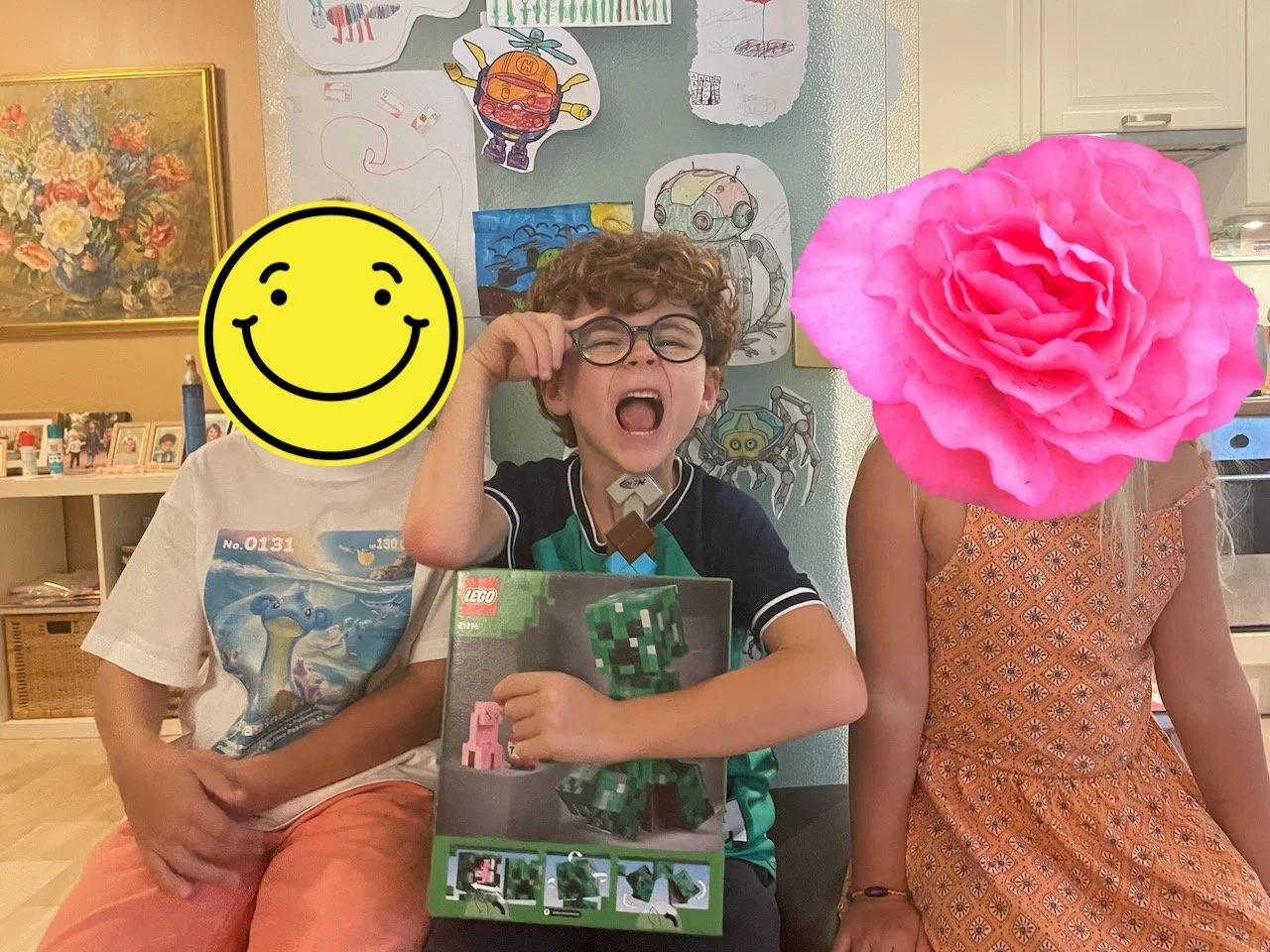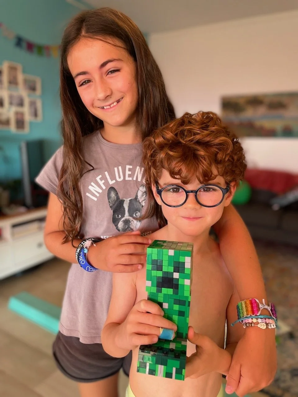 The next morning, Daphné and Django started putting the LEGO builds together. Meet THE CREEPER from Minecraft.