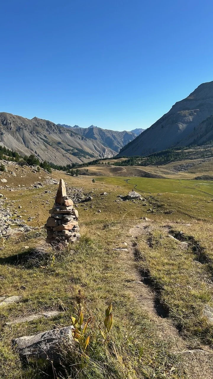 Rock piles like this are a common site on trails. They are called “cairns” and are used to mark the trails when no trees or large rocks are present to paint with the trail marker.
