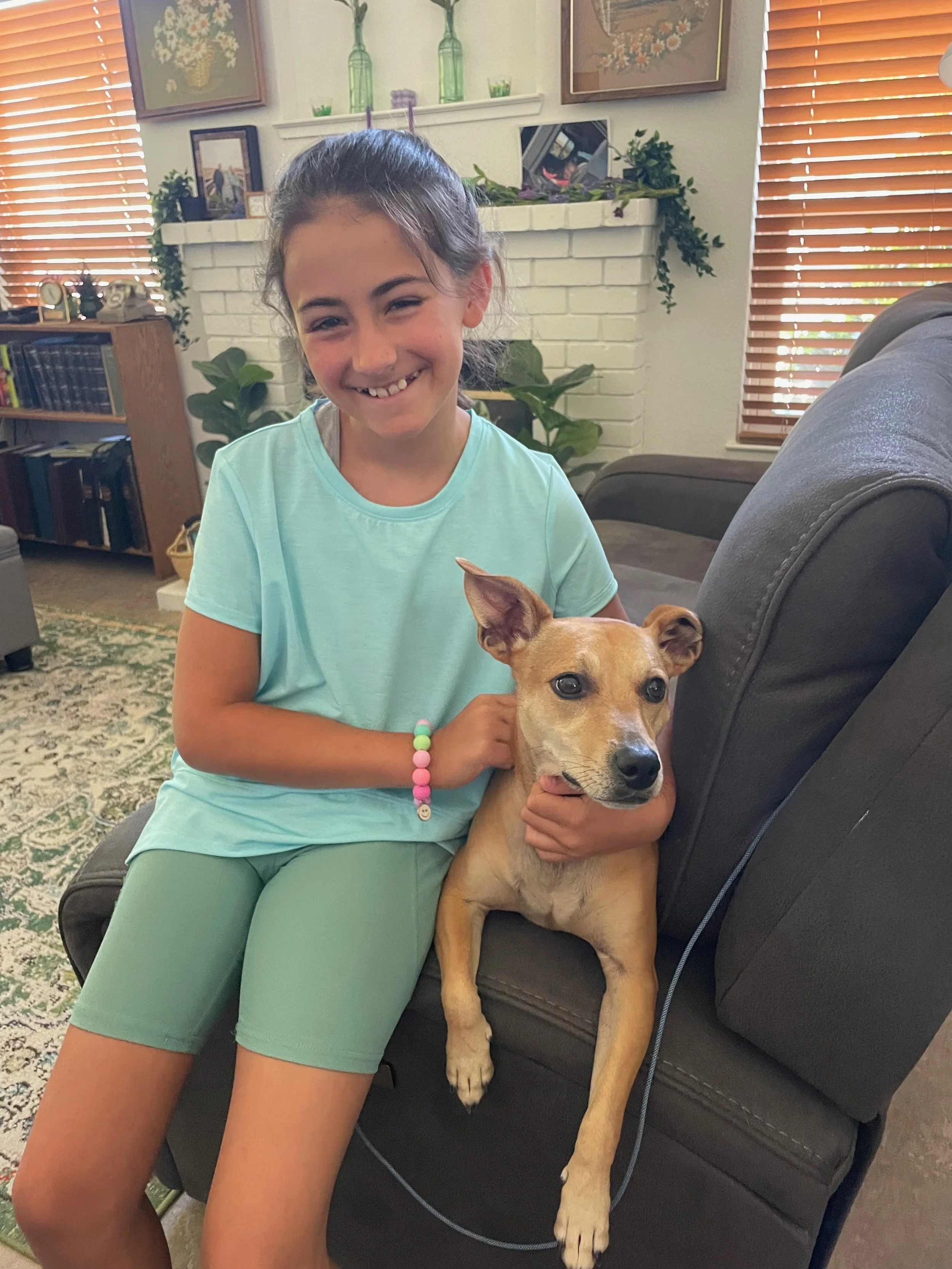 Daphné saying good bye to blind and deaf Daisy.