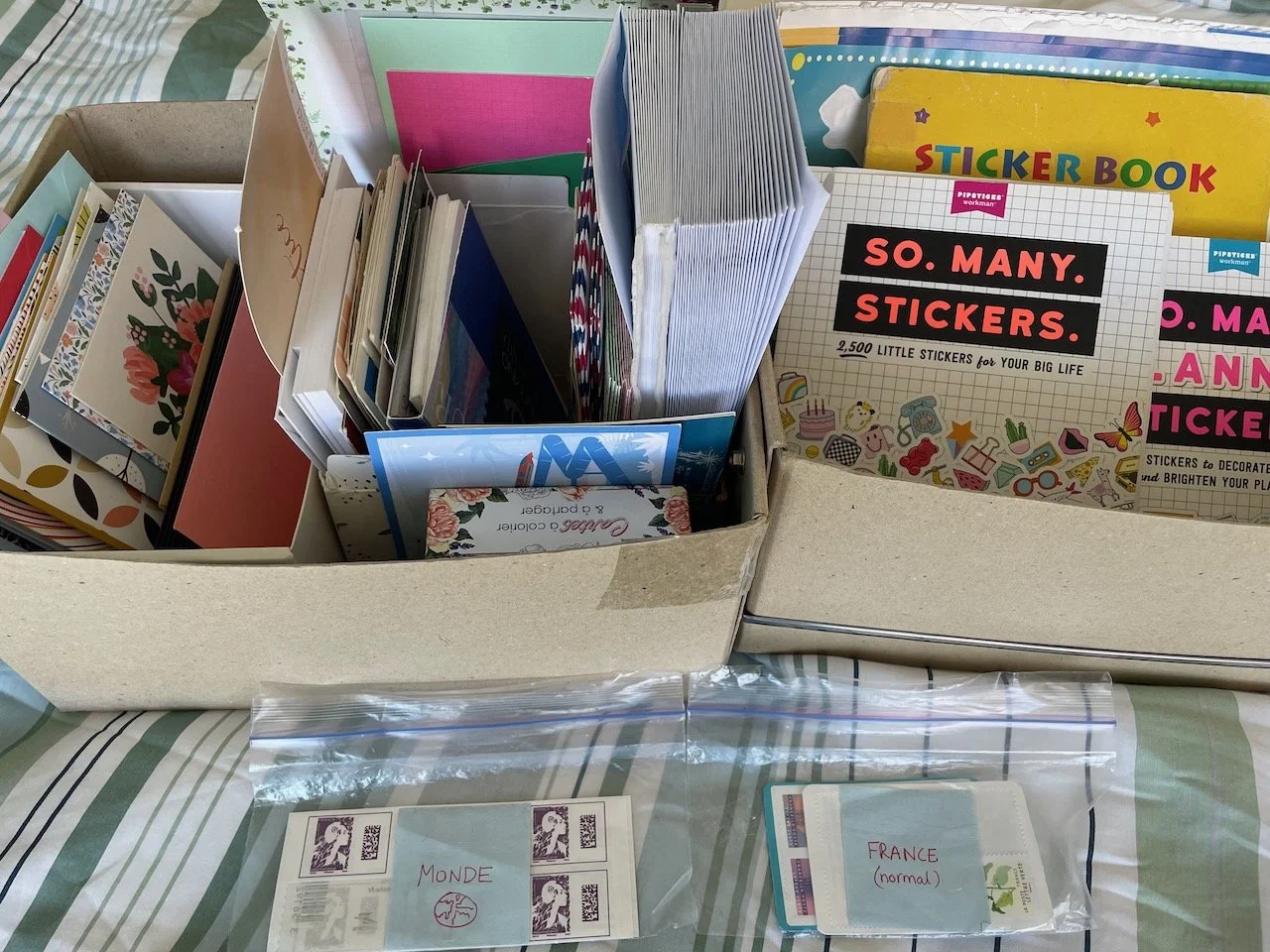 2) Writing letters : physical letters with fun stationery, stickers and postage stamps. Below is my collection of stationery, stickers and stamps.