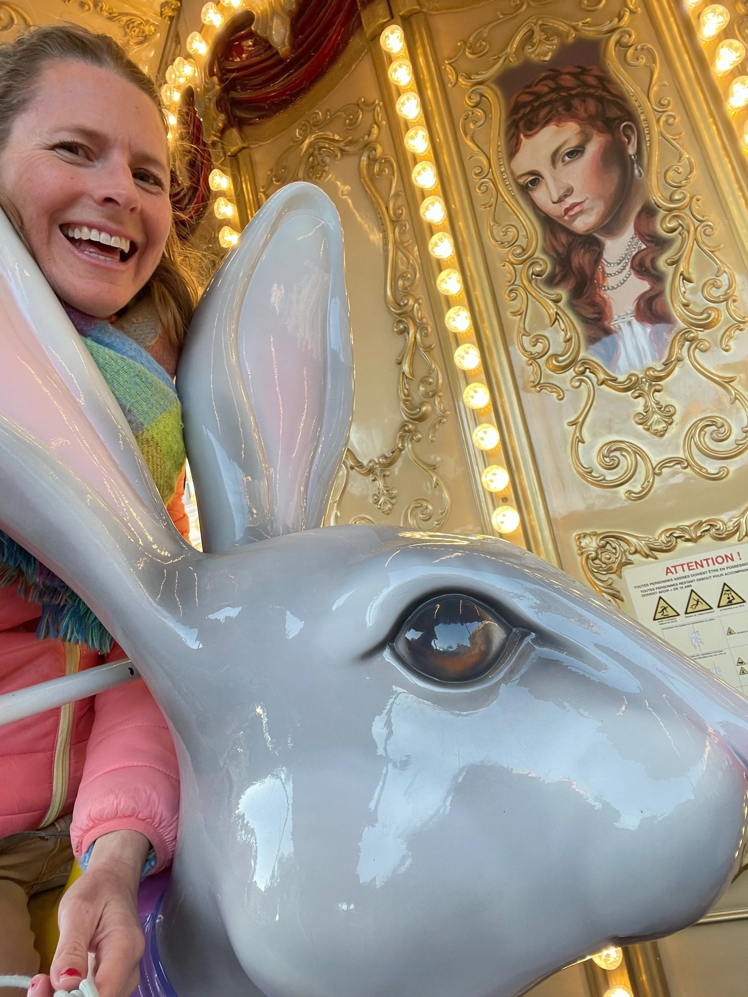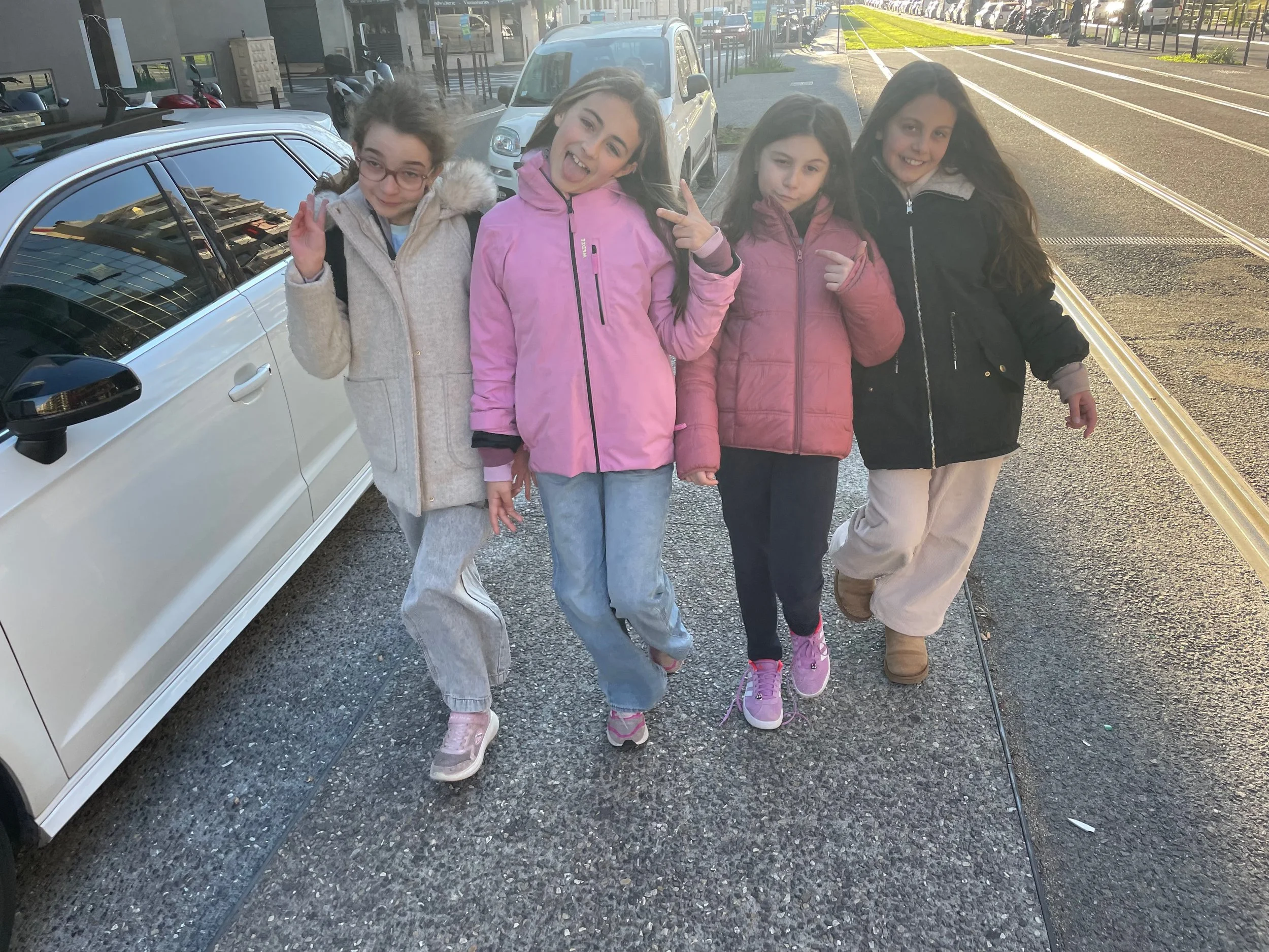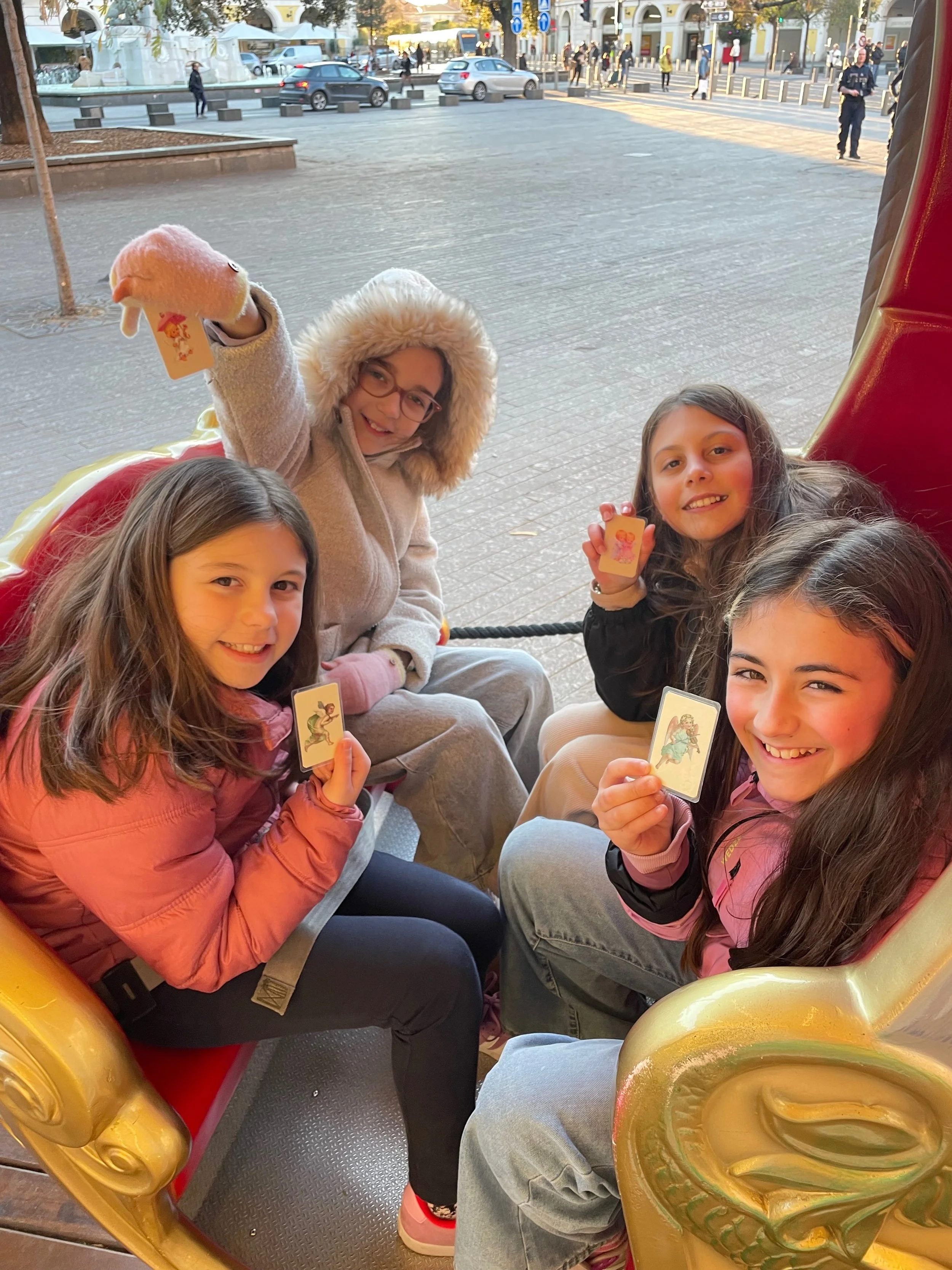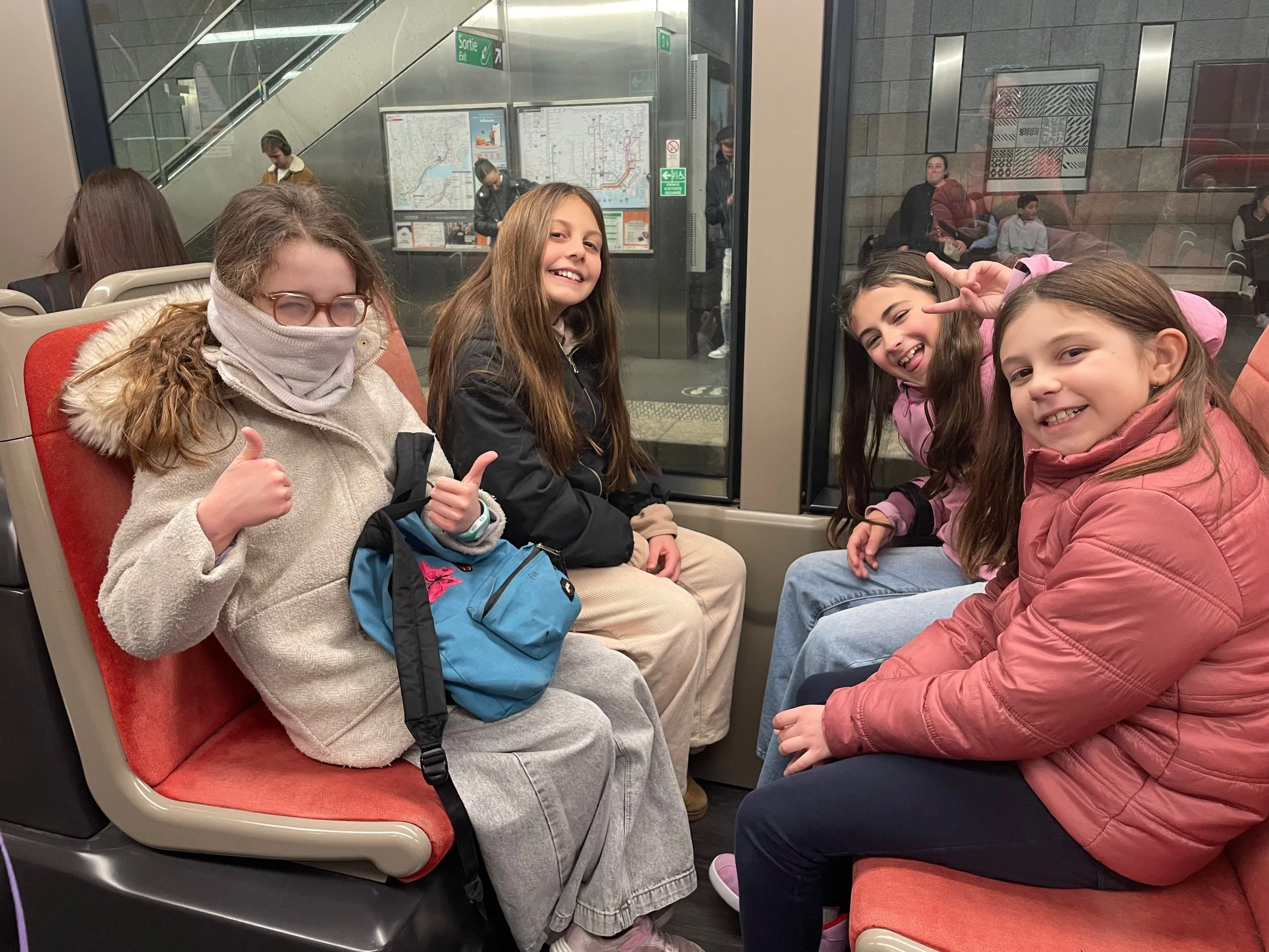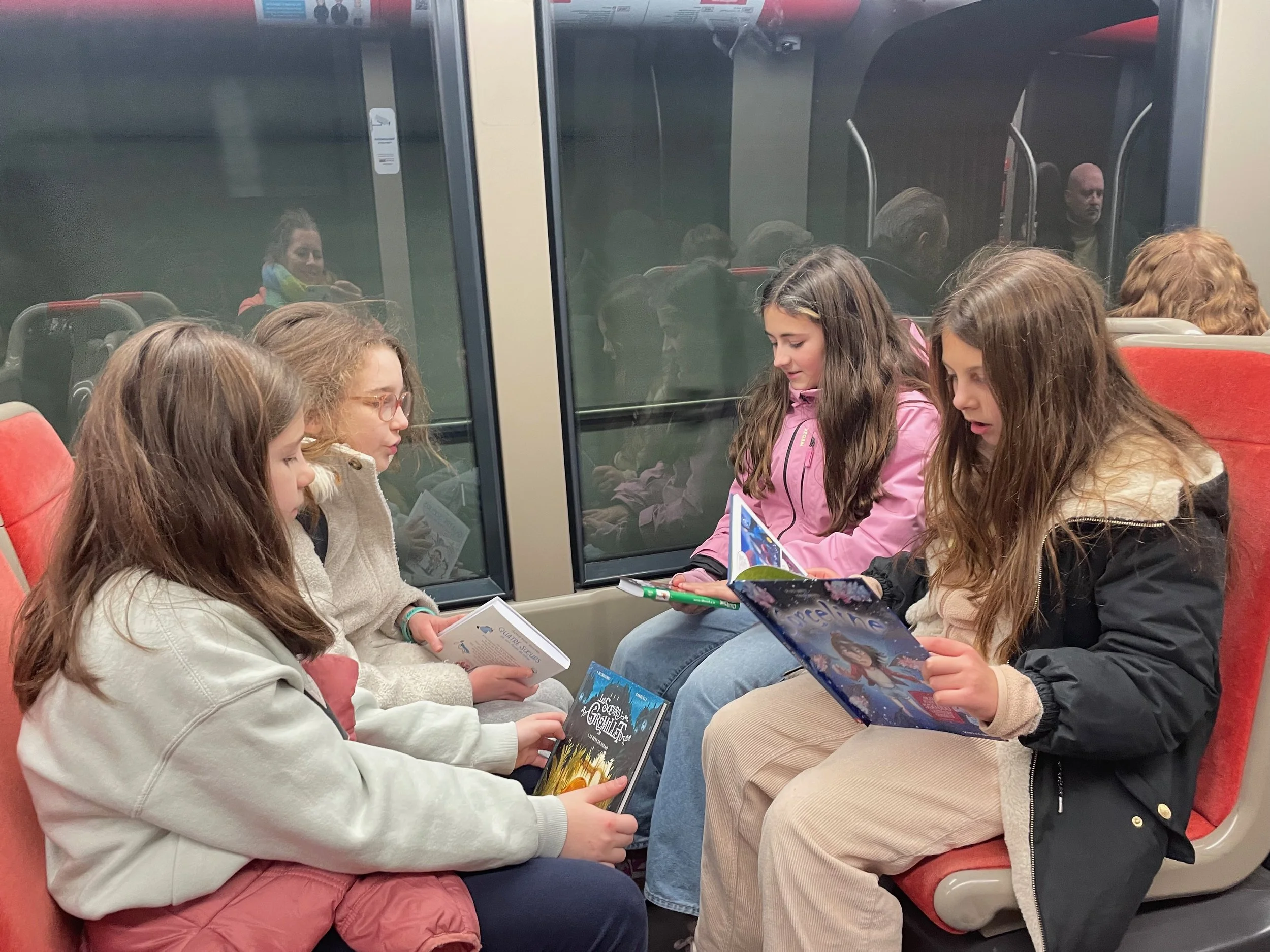 Their “goody bag” was that they could each pick out a book at the bookstore. These girls all love reading, and Daphné had the idea with the bookstore. So creative! Reading on the tram ride home.